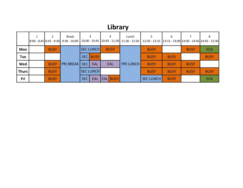OUR LIBRARY calendar